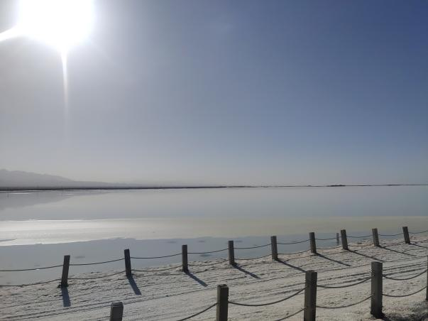 茶卡鹽湖是古絲綢之路的重要站點,是109國道、315國道的交匯處,東距省會西寧298千米,西距德令哈200千米,被譽為柴達木盆地東大門。茶卡鹽湖四周雪山環(huán)繞,平靜的湖面像鏡子一樣,反射著美麗的令人陶醉的天空景色,被譽為“中國的天空之鏡”,置身于鹽的世界,漫步湖面如行走云端之上,水映天,天接地,人在湖間走,宛如畫中游。